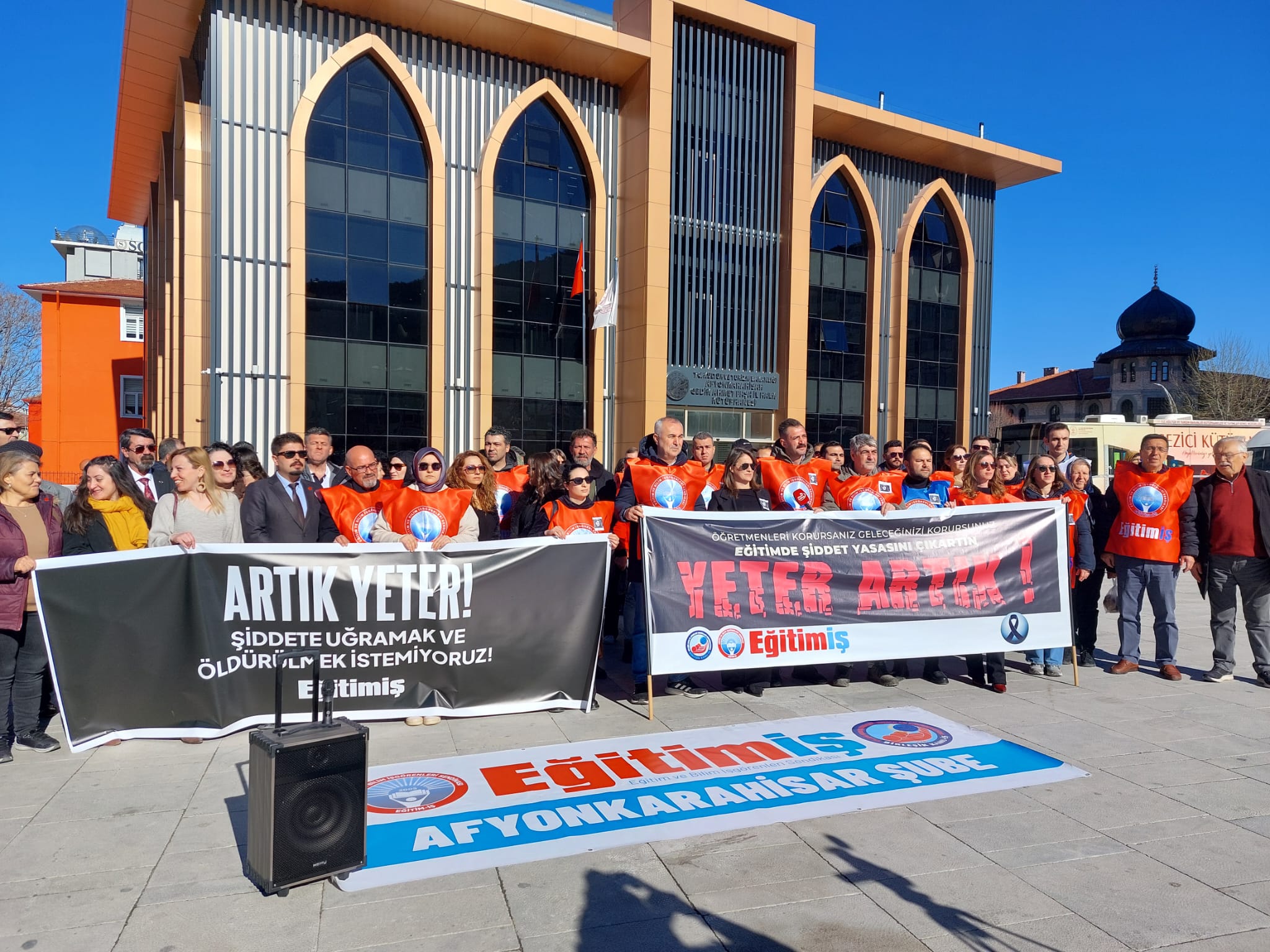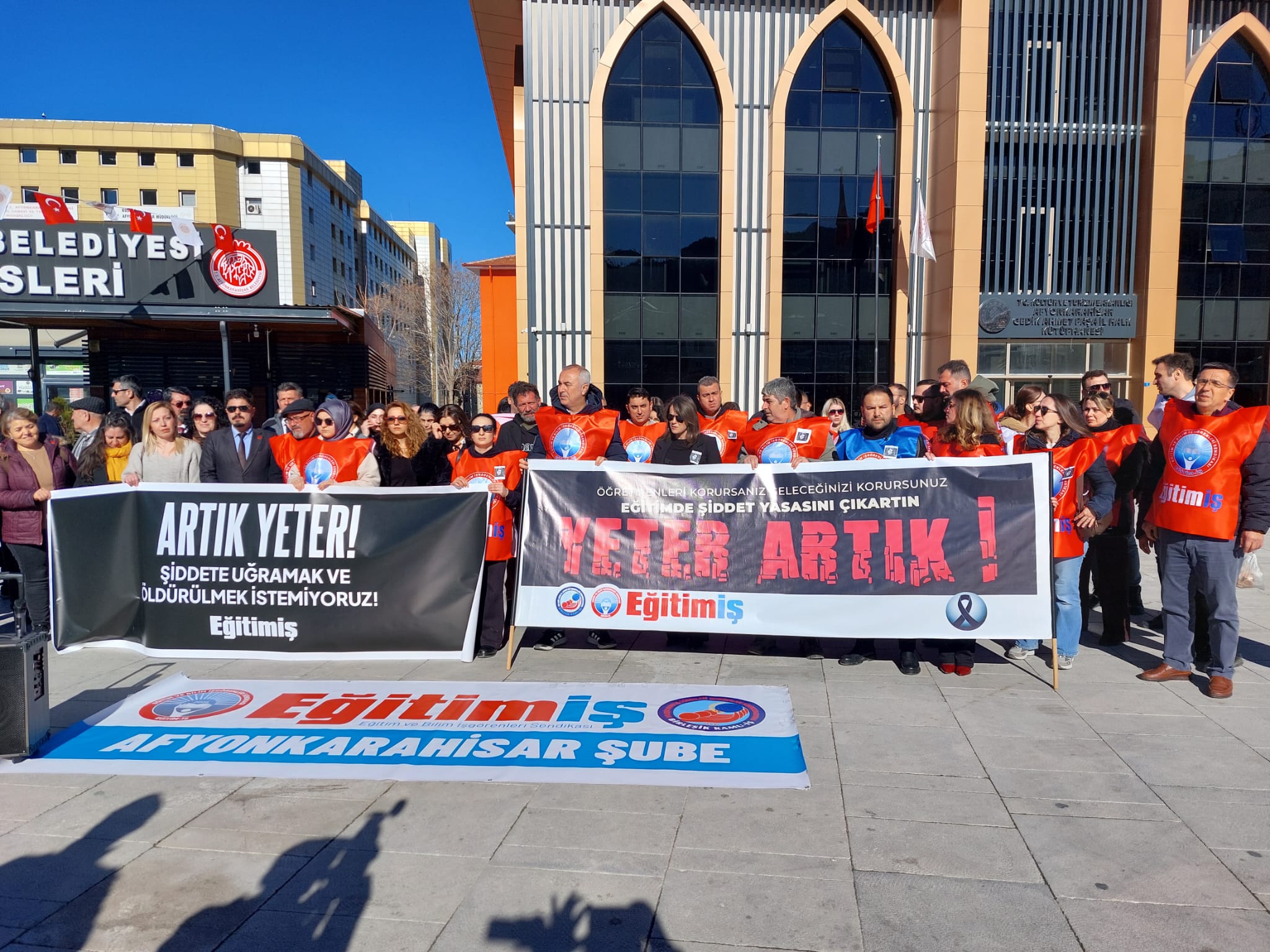 Cansuyu Derneğinden Eğitim ve Eğitimciye Tam DestekAfyonkarahisar’daki Zafer Meydanı’nda bir araya gelen eğitimciler, “Bu ülkede okulda yine bir öğretmen öldürüldü! Artık yeter!” ifadeleriyle başlayan açıklamada, okullarda artan şiddet olaylarına dikkat çekti.