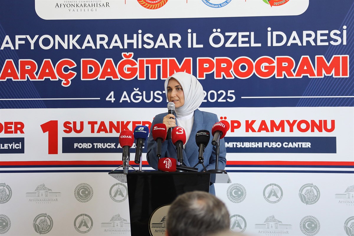 Alınan araçlara dair bilgiler veren Vali Doç. Dr. Kübra Güran Yiğitbaşı, “İl Özel İdaremiz öncülüğünde geçtiğimiz aylarda sürdürülebilir koyun projesi gerçekleştirdik. Devlet Hastanemize cihaz ve ekipman desteği verdik. Sahipsiz sokak hayvanları için araçlar aldık. Bugün de Devlet Malzeme Ofisi aracılığıyla 18 milyon 287 bin TL bedelle temin edilen 4 adet kazıcı yükleyici, 7 milyon 664 bin TL bedelle temin edilen 1 adet su tankeri arazöz ve 7 adet de çekici tırı araç filomuza kazandırmış olduk. Ayrıca, çevre temizliği ve köylerimizin yaşam standartlarının iyileştirilmesi adına, Çevre ve Şehircilik Bakanlığımızdan sağlanan 9 milyon 240 bin TL ödenek ve İl Özel İdaremizin 2 milyon 232 bin TL katkısıyla temin edilen 3 adet Çöp Toplama Kamyonunu da hizmete sunmuş olacağız. Afyonkarahisar’ın gelişme ve kalkınma yolculuğuna devletimizin tüm kurumlarıyla el birliğiyle önemli bir güç katmış olacağız.” diye konuştu.