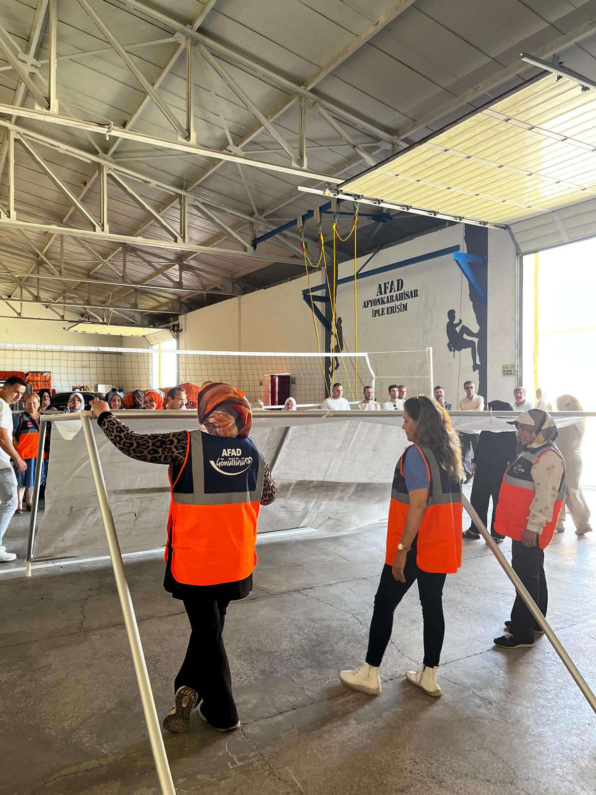 Afyonkarahisar İl Afet ve Acil Durum Müdürlüğü kampüsünde gerçekleşen programda, afetlere karşı bilinç oluşturmak amacıyla bilgilendirme sunumları ve uygulamalı eğitimler gerçekleştirildi. Etkinlikte, AK Kadınlara olası afet anlarında alınması gereken önlemler ve doğru müdahale yöntemleri hakkında önemli bilgiler aktarıldı.