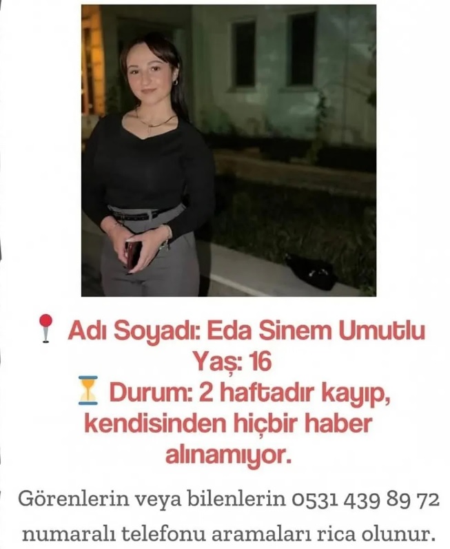 Eda’yı gören ya da nerede olduğu hakkında bilgi sahibi olanların 0531 439 89 72 numaralı telefondan aileye ulaşabilecekleri belirtildi. Kaynak H.M