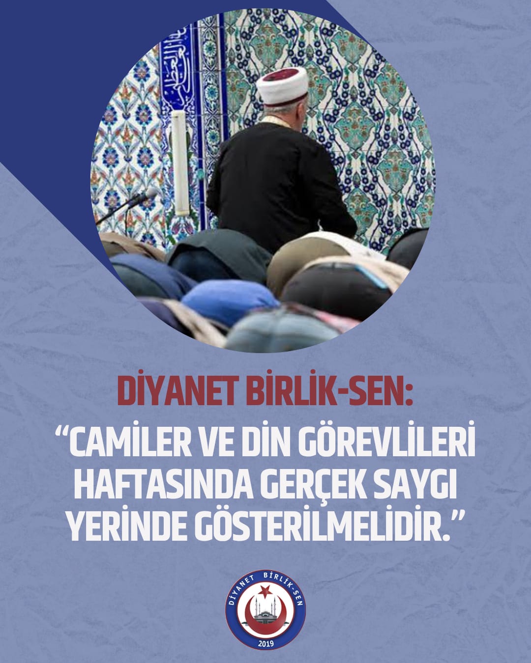 Diyanet Birlik Sen olarak, haftanın anlamına gölge düşüren bu yanlış uygulamaların derhal terk edilmesi ve din görevlilerimizin kıymetinin kendi mekânlarında, görev başında, hak ettikleri şekilde takdir edilmesi gerektiğini vurguluyoruz. Kaynak: Diyanet Birlik-Sen Genel Merkezi