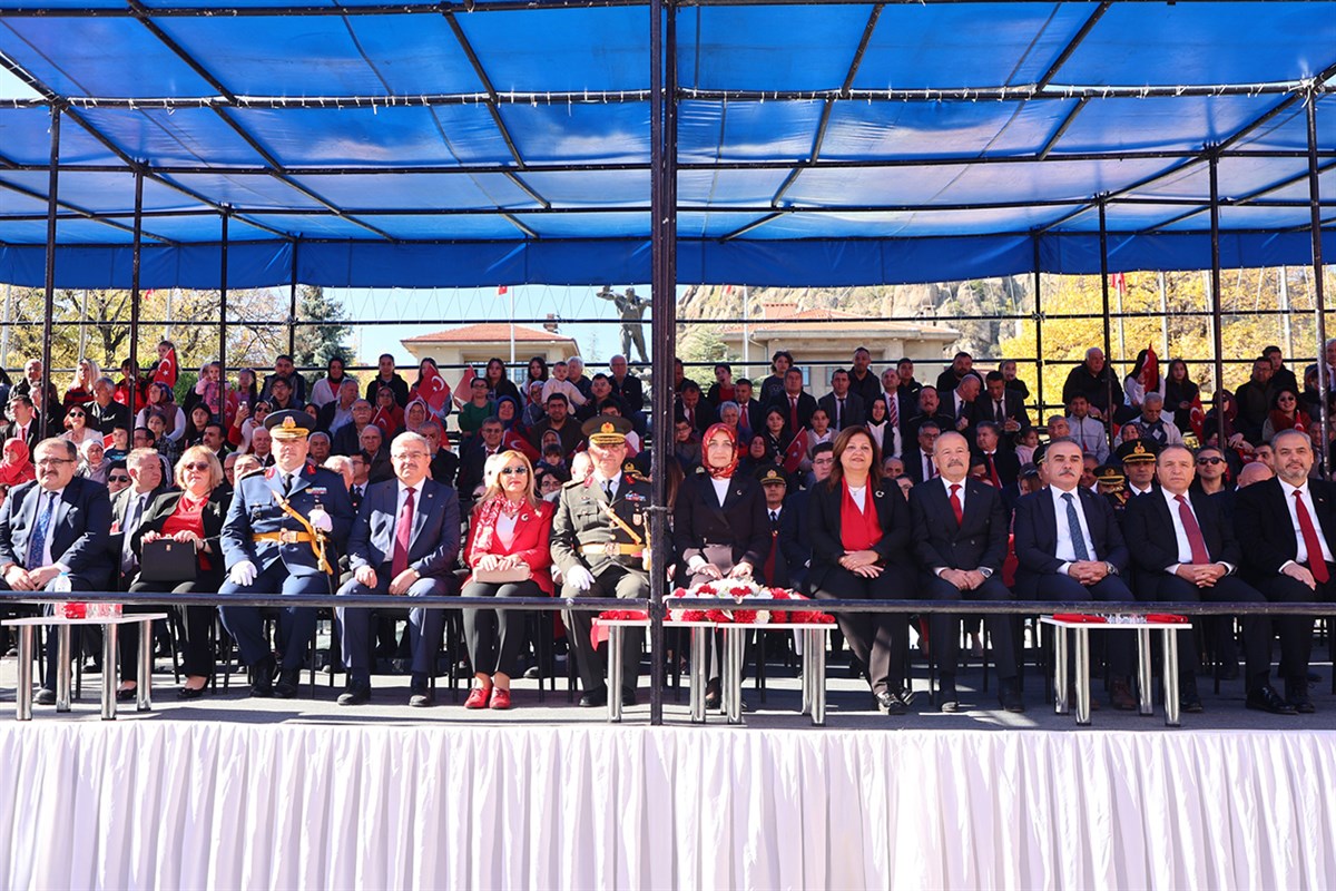 Saygı duruşunun ardından İstiklâl Marşı okundu. Cumhurbaşkanı Recep Tayyip Erdoğan’ın kutlama mesajının okunmasının akabinde Vali Doç. Dr. Kübra Güran Yiğitbaşı, günün anlam ve önemini belirten konuşmasını yaptı. Vali Yiğitbaşı, “Tarihî bir azimle inşa ettiğimiz ve milletimizin maziden atiye istiklal yolculuğunun en müstesna durağı olan Cumhuriyetimizin 102. kuruluş yıl dönümünü, destanların yazıldığı bu kadim şehirde, Afyonkarahisar'ın kahraman ve vefalı evlatlarıyla birlikte kutluyor olmanın tarifsiz gururunu ve eşsiz coşkusunu yaşıyoruz. Bugün, sadece resmî bir bayram ya da takvimlerdeki sıradan bir yıl dönümü değil; bu aziz milletin hürriyet ve bağımsızlık ruhunun en yüksek mertebede taçlandığı, gelecek nesillere devredeceğimiz en büyük ve en kıymetli emanetimiz olan Cumhuriyetimize sahip çıkma günüdür.” dedi.