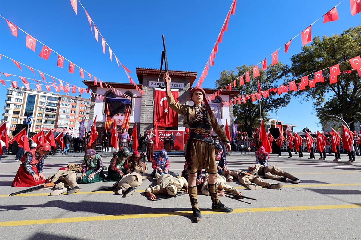 Ardından 4. Afyon Lisesi öğrencilerinden, Büşra Sıla Yeşiltaş, “Cumhuriyet” adlı şiirini okumasının ardından Karahisar Zeybekleri halk oyunu ekibi gösterilerini sundu.