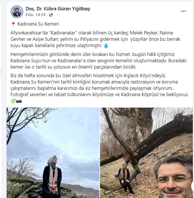 Afyonkarahisar’da “Kadınanalar” olarak bilinen üç kardeş; Melek Peyker, Naime Gevher ve Asiye Sultan; şehrin su ihtiyacını gidermek için yüzyıllar önce bu berrak suyu kapalı kanallarla şehrimize ulaştırmıştır.