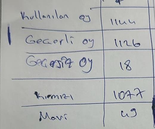 Bu sonuçların ardından, 1077 oy ile Kırmızı liste adayı mevcut başkan İbrahim Karataş alırken, Mavi listenin adayı Mehmet Yalçın Alıcı'da 49 oy aldı. Kaynak: M.E