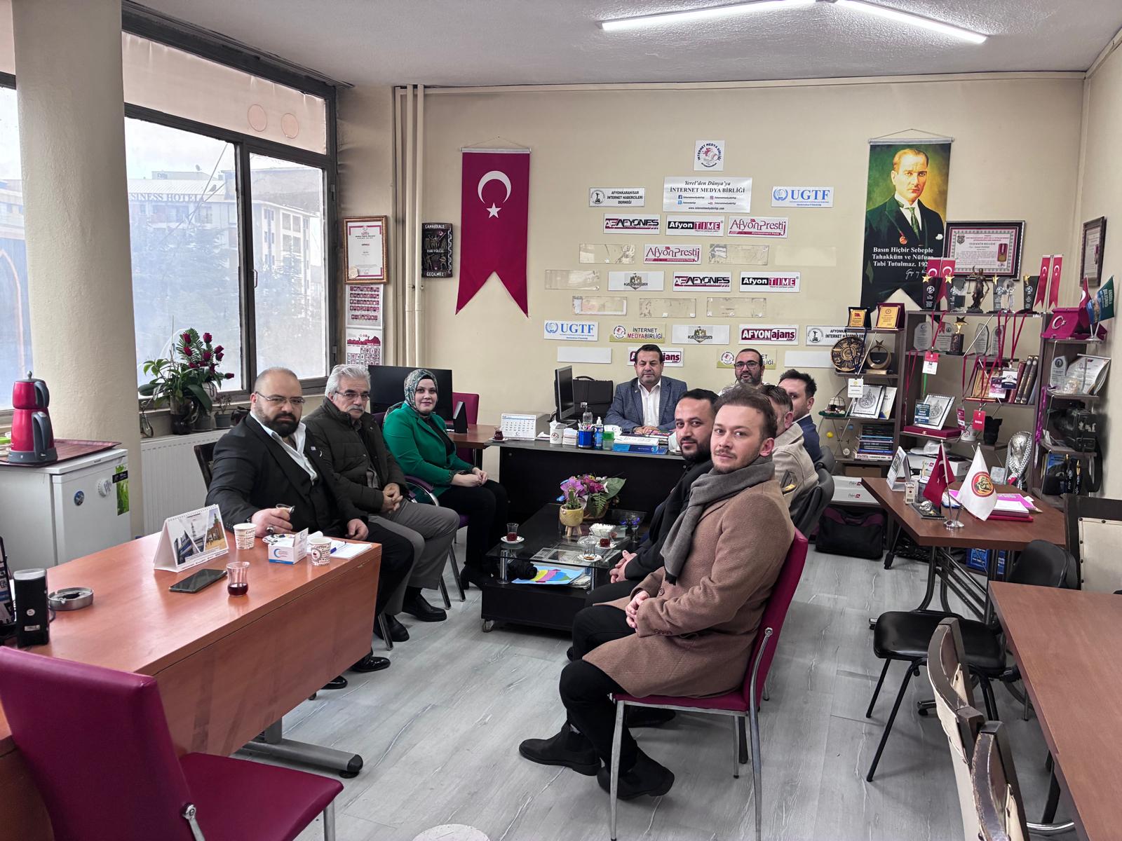 Anahtar Parti Merkez İlçe Teşkilatı’nı, Afyonkarahisar İnternet Habercileri Derneği Onursal Başkanı İsmail Ögeday ile Dernek Başkanı Soner Gürsan karşıladı. Ziyarete, Anahtar Parti Merkez İlçe Başkanı Hasan Yolal’ın yanı sıra İlçe Teşkilat Sekreteri Merve Nur Önder, Teşkilat Başkanı İbrahim Dal ve Yönetim Kurulu Üyeleri Ahmet Çetin, Kadir Yağıcı, Ali Ak ile Yüksel Kurt katıldı.