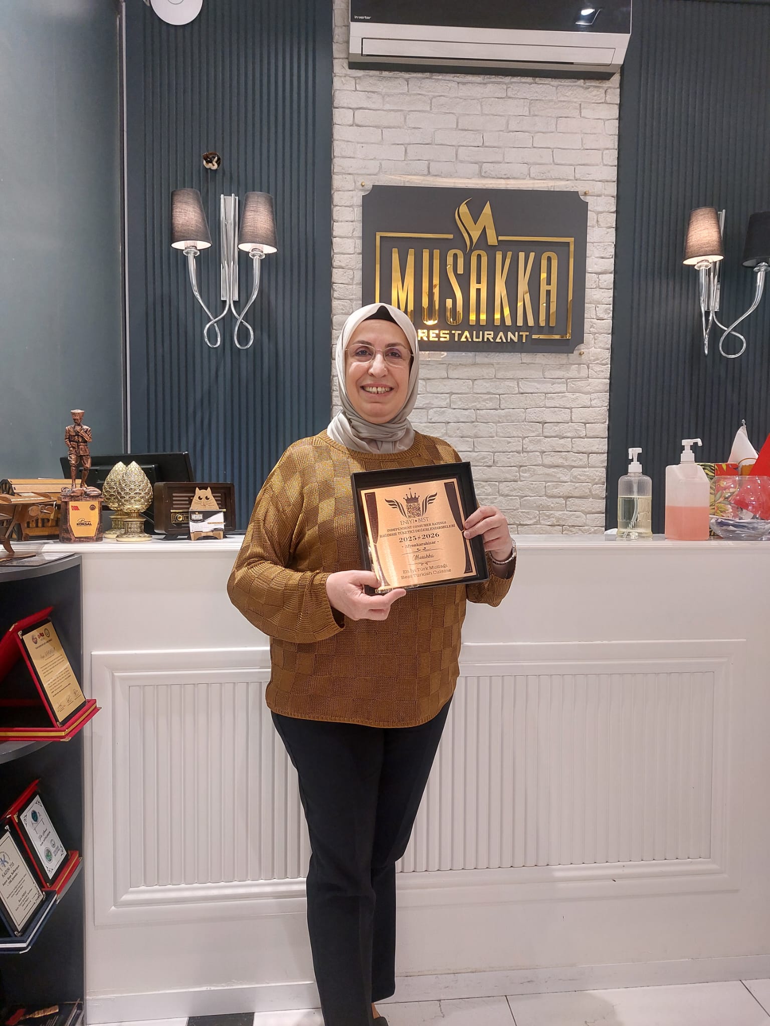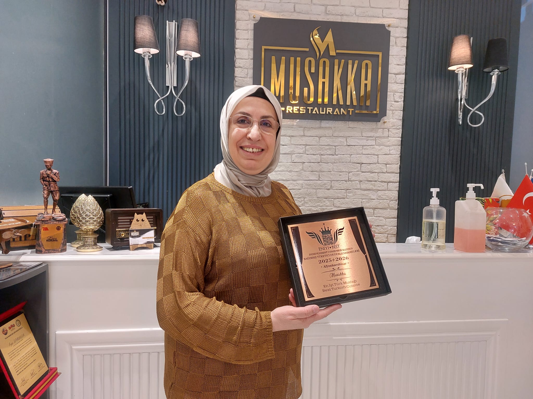 Bağımsız Tüketici Değerlendirmeleri Yönetim Kurulu tarafından yapılan tevdi edilen ödülde işletmenin başarılarının devamı temenni edilerek, ülke genelinde fark yaratan hizmet anlayışının takdir edildiği ifade edildi. İşletme yetkili Ayşe Safkurşun ise, böylesine bir ödüle layık görülmenin mutluluğunu yaşadıklarını ifade ederek, Musakka restoran olarak, müşteri memnuniyeti başta olmak üzere, Damak tadı ve kaliteden ödün vermediklerini ifade ederek,i kendilerini bu ödüle layık gören Bağımsız Tüketici Değerlendirmeleri yapan yetkililere teşekkür etti. Kaynak: Afyon Time