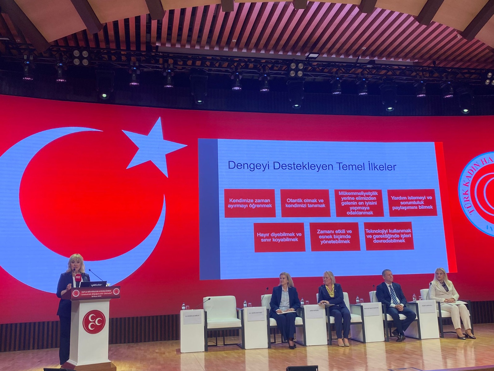 Moderatörlüğünü Türk Kadın Hareketi Derneği Genel Başkanı Mine Bayram’ın yaptığı panelde, MHP Afyonkarahisar Kadın, Aile, Çocuk ve Engelli Politikalarından Sorumlu İl Başkan Yardımcısı Av. Nesrin Çelikbilek de “İş ve Özel Yaşam Dengesi” konulu bir sunum gerçekleştirdi.